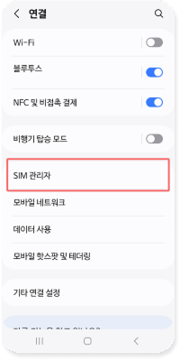 2. 'SIM카드 관리자' 클릭