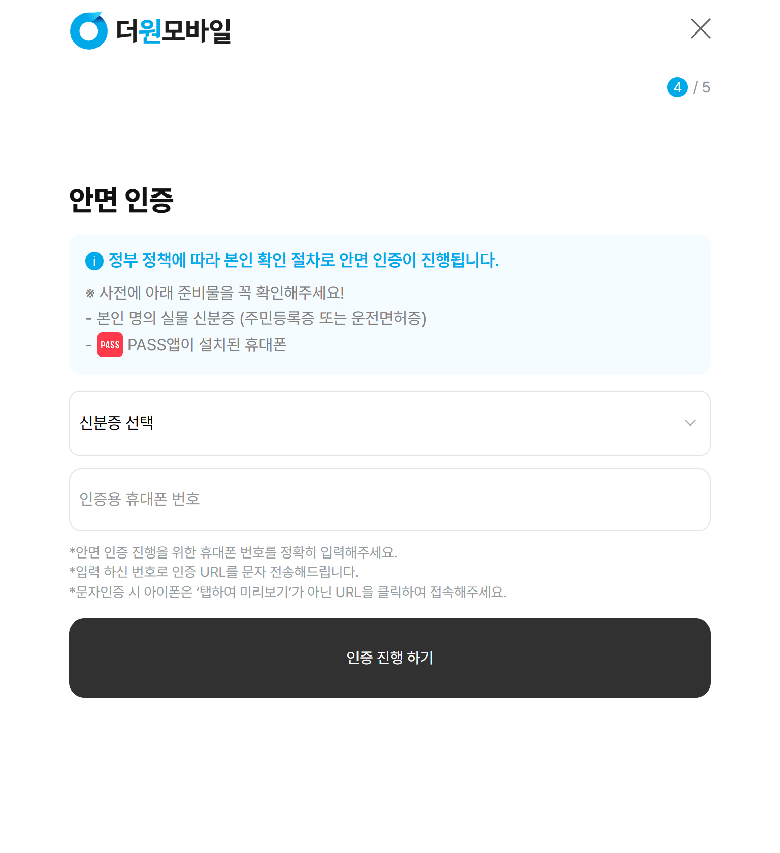 ※ 안면인증은 카메라로 실물 신분증과 얼굴을 비교해 확인하는 방식이라, 카메라가 정상적으로 작동하는 휴대폰이 필요합니다.